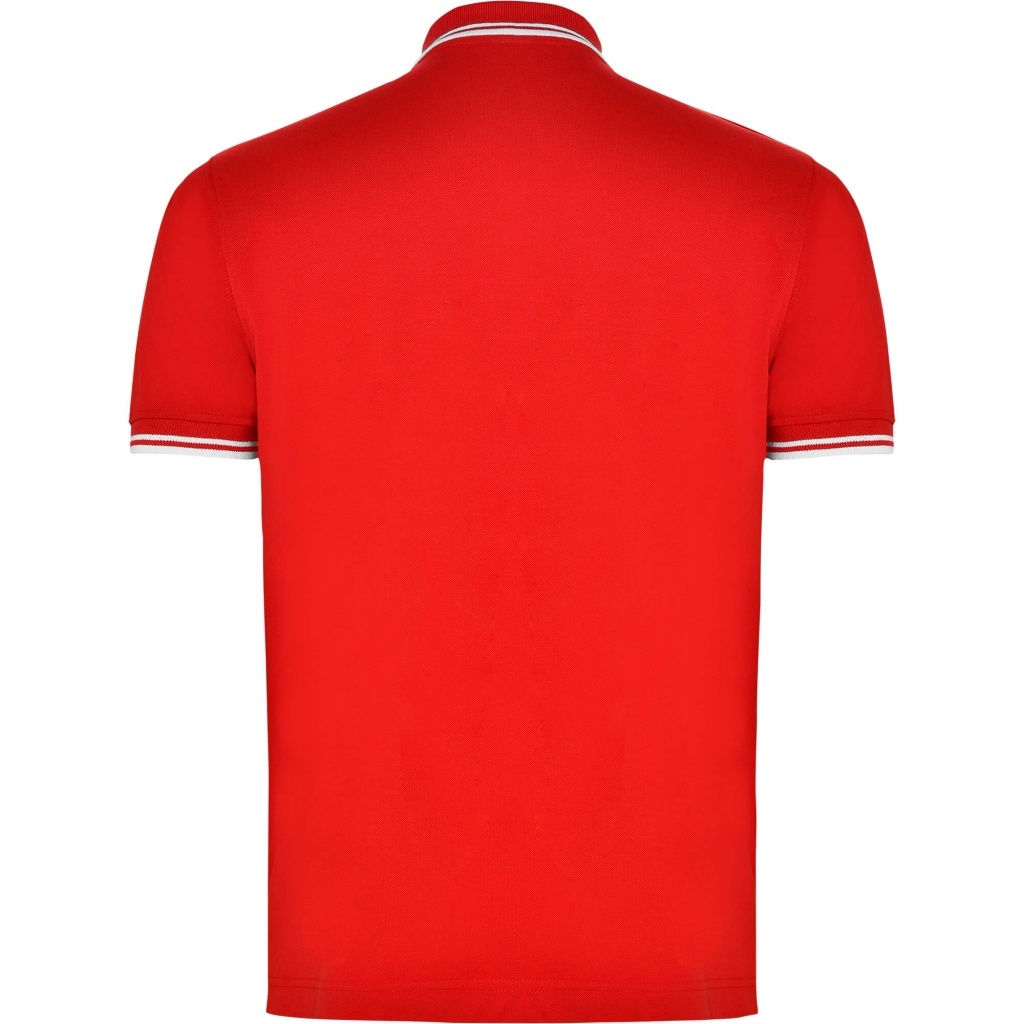 Koszulka polo z kontrastowym wykończeniem kołnierzyka. Zapięcie na trzy guziki. Prążkowany kołnierzyk i mankiety. Wzmocnione, kryte szwy przy kołnierzyku. Wnętrze plisy przy zapięciu dopasowane kolorystycznie do wykończenia kołnierzyka, mankietów i bocznych rozcięć u dołu.