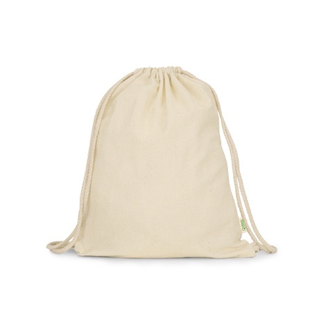 Worek ze sznurkami, uszyty w 100% z bawełny organicznej.