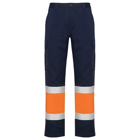 4. Dwukolorowe spodnie wykończone odblaskowymi pasami.