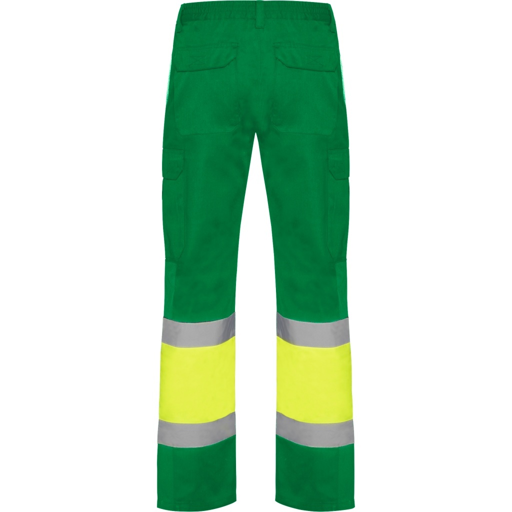 4. Dwukolorowe spodnie wykończone odblaskowymi pasami.
