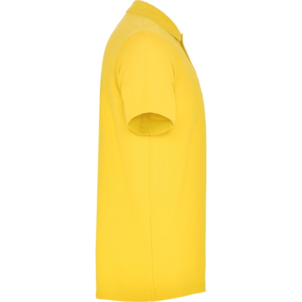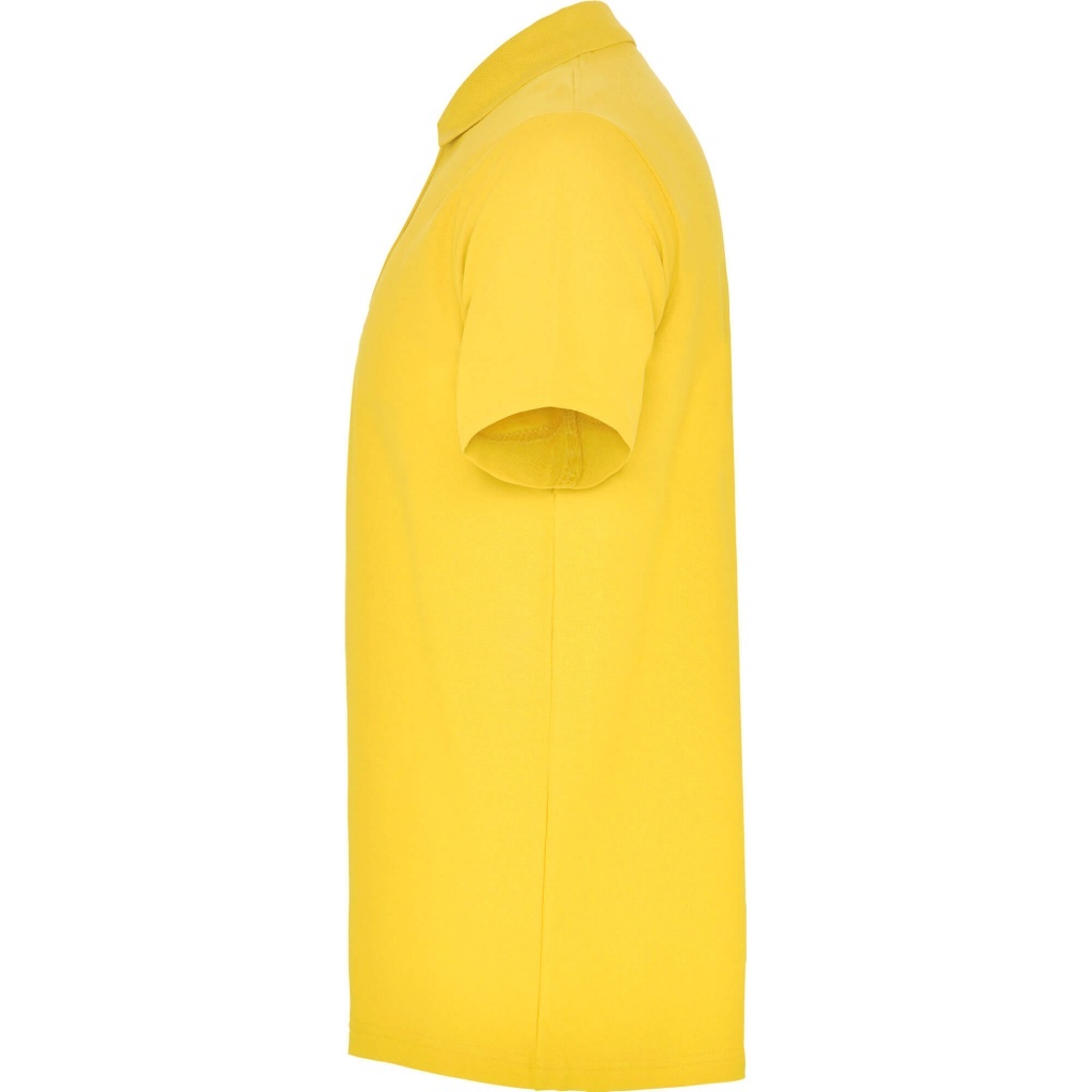 Koszulka polo z krótkim rękawem. Zapięcie na trzy guziki. Prążkowany kołnierz. Wzmocnione, kryte szwy w kołnierzu i na ramionach.