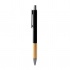 Kulkowy długopis o matowym wykończeniu, z bambusowym uchwytem i ciemnymi detalami. Wyposażony w niebieski tusz.