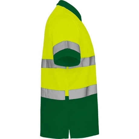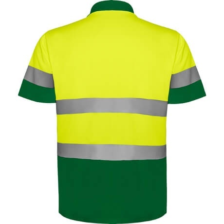 Techniczna, dobrze widoczna koszulka polo z krótkimi rękawami, zaprojektowana z kołnierzem prążkowanym 1x1, zapięciem na 3 guziki oraz dwoma poziomymi paskami o wysokiej widoczności na piersi i rękawach. Materiał odporny na zaciągnięcia zapewnia trwałość podczas intensywnego użytkowania.