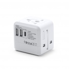 Uniwersalny adapter podróżny. Dwa porty wyjściowe USB i jeden USB typu C. Dopuszczony do użytkowania w Europie, Azji, Wielkiej Brytanii, USA i Australii. Zapakowany w białym pudełku.