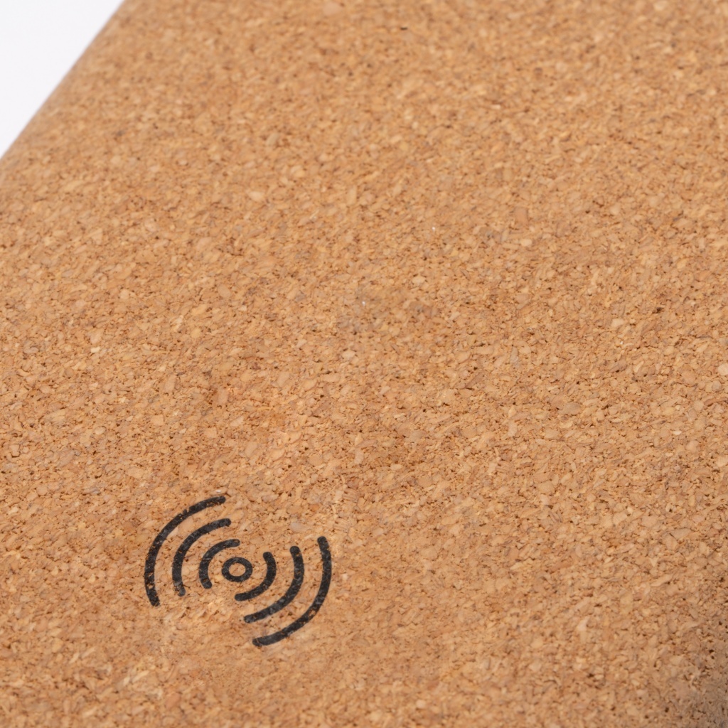 Powerbank z obudową wykonaną z włókna pszennego i korka. Pojemność: 10 000 mAh. Bezprzewodowe szybkie ładowanie: 15 W. Wyjście USB typu C i USB o mocy 20 W. Kabel USB typu C w zestawie. Zapakowany w pudełku zaprojektowanym z myślą o środowisku.