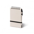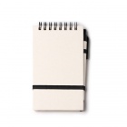 Notes w formacie A6 wykonany z kartonów po mleku pochodzących z recyklingu. Zestaw zawiera elastyczną gumkę oraz długopis z niebieskim atramentem. 80 arkuszy w linie.