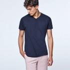 T-shirt z krótkim rękawem. Dekolt w szpic. Czterowarstwowy ściągacz przy szyi, wzmocnione, kryte szwy przy kołnierzyku i na ramionach. Szwy boczne.