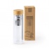 Butelka z podwójnymi ściankami, wykonana ze szkła borokrzemianowego, z bambusową pokrywką.