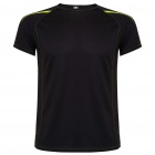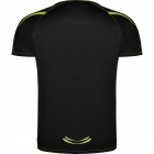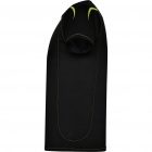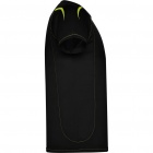 T-shirt techniczny z raglanowymi rękawami. Kontrastowe przeszycia na mankietach, w pasie, przy kołnierzyku oraz po bokach. Karczek wykończony tym samym materiałem. Oddychająca tkanina, łatwa w praniu i suszeniu. Odblaskowe detale.
