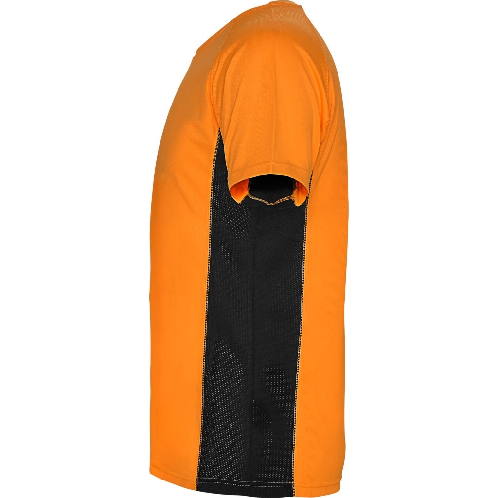 Dwukolorowa koszulka techniczna z krótkimi raglanowymi rękawami. Panele boczne i pachy wykonane z mikroperforowanej tkaniny. Okrągły dekolt wykończony wzmocnionymi, krytymi szwami. Przyjemna w dotyku tkanina o dopasowanym kroju.