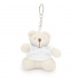 Uroczy brelok z misiem ubranym w kolorową koszulkę, wykonany z miękkiego poliestru.