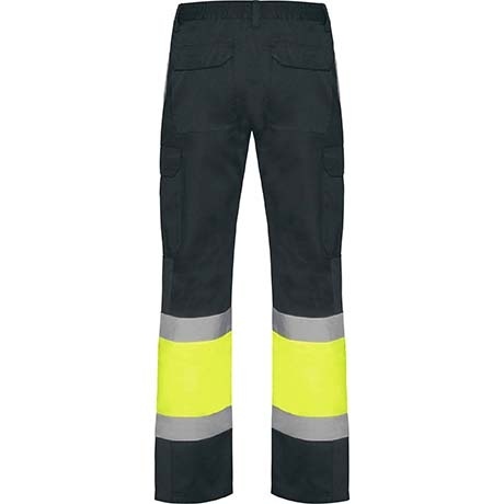 4. Dwukolorowe spodnie wykończone odblaskowymi pasami.