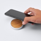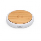 Bezprzewodowa ładowarka 5W z naturalną bambusową powierzchnią górną oraz białym korpusem ABS. Połóż na niej smartfon, aby rozpocząć ładowanie. Kabel ładujący w zestawie. Produkt kompatybilny z urządzeniami wyposażonymi w technologię bezprzewodową. DC5V.