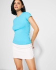 Damska koszulka z krótkim rękawem. Kołnierzyk wykończony lamówką. Dopasowany krój. Szwy boczne.