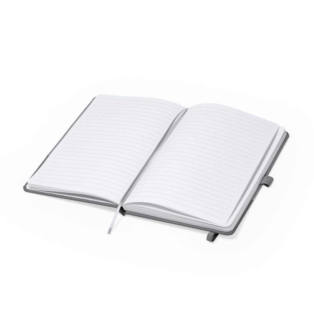 Notatnik w formacie A5 z okładką ze sztruksu i skóry PU. Zawiera 80 kartek w linie.