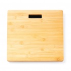 Waga wykonana z bambusa, wyposażona w antypoślizgową podstawę. Wyświetlacz cyfrowy pokazuje pomiar wagi oraz temperatury. Zasilanie: 2 baterie AA (nie dołączone).