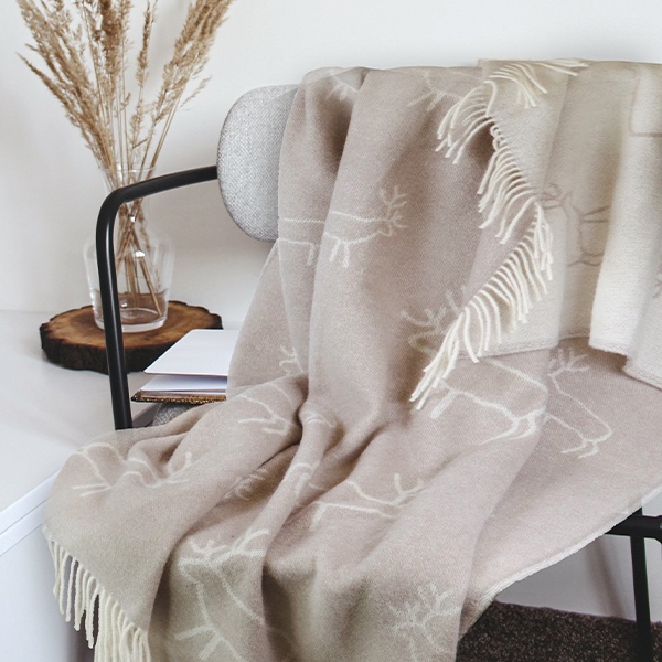 Wełniany koc w naturalnym odcieniu z regionu Stavanger w Norwegii. Wykończony długimi frędzlami, które tworzą przytulny klimat. Przyjazny dla zwierząt i wykonany zgodnie z normami UE.