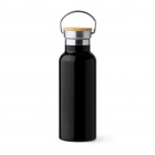 Butelka wykonana ze stali nierdzewnej 304 z podwójnymi ściankami i bambusową pokrywką.