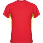 Dwukolorowa koszulka techniczna z krótkim rękawem. Okrągły kołnierzyk, kryte szwy wokół karczku. Kontrastowe wstawki po bokach. Materiał łatwy w praniu, szybkoschnący i oddychający.