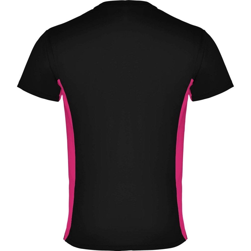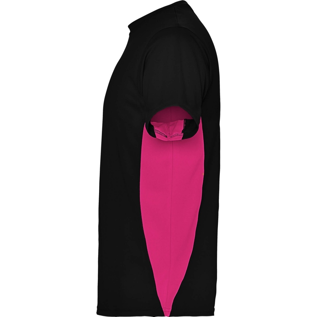 Dwukolorowa koszulka techniczna z krótkim rękawem. Okrągły kołnierzyk, kryte szwy wokół karczku. Kontrastowe wstawki po bokach. Materiał łatwy w praniu, szybkoschnący i oddychający.