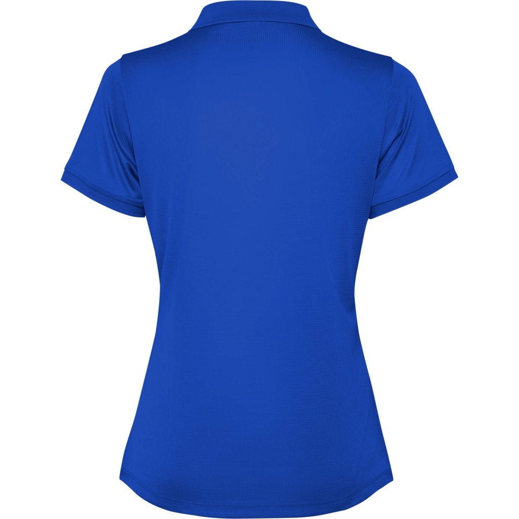 Damska koszulka techniczna polo z krótkim rękawem. Kołnierz z poliestru wykończony ściągaczem 1x1, zapinana na plastikowe, zatrzaskowe guziki w kolorze materiału. Szwy zamaskowane obszyciem w tym samym odcieniu. Rękaw zakończony ściągaczem 1x1 w identycznym kolorze.