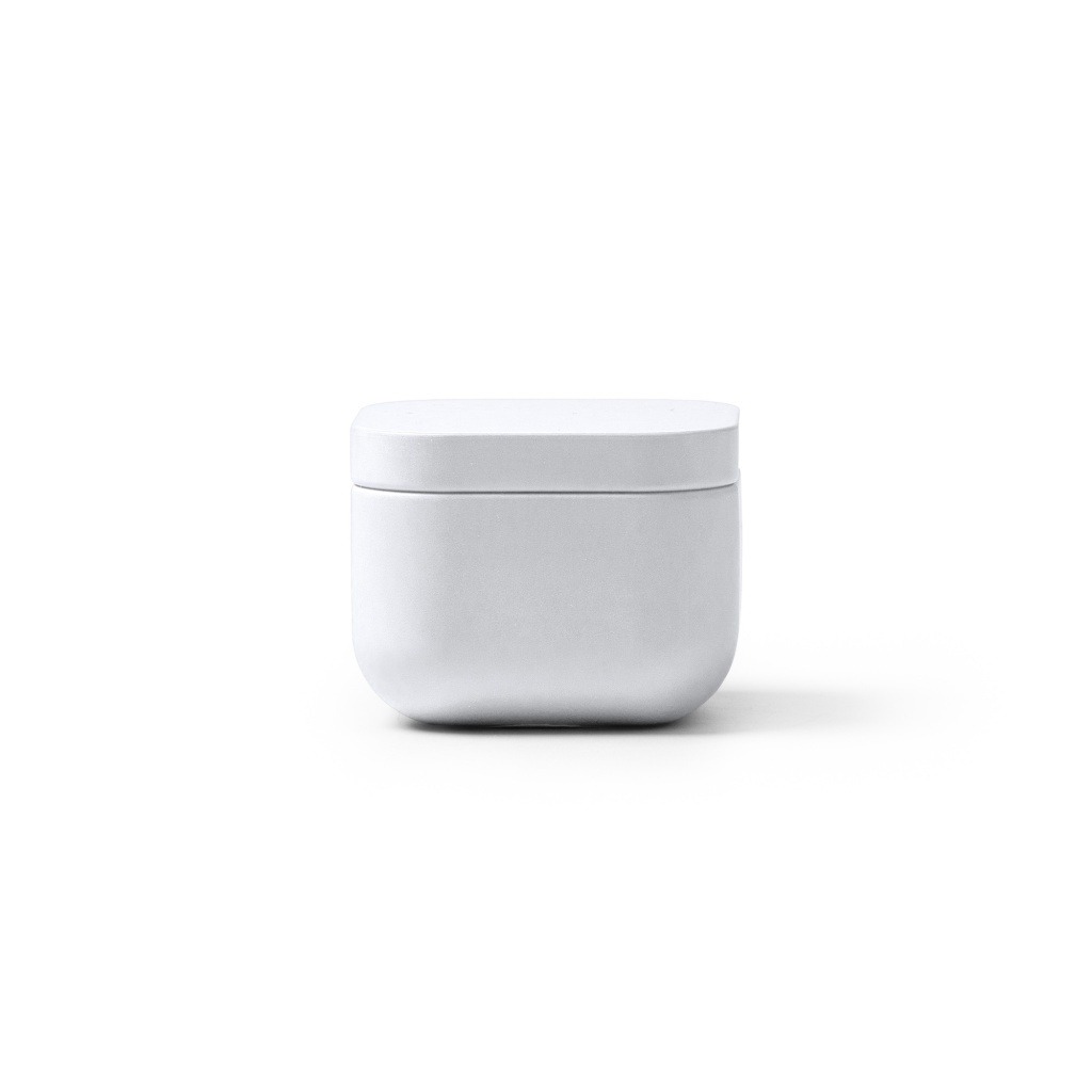 • Trini - Aromatyczna świeca z kwadratową, metalową miską. Wosk roślinny o aromacie lawendy.