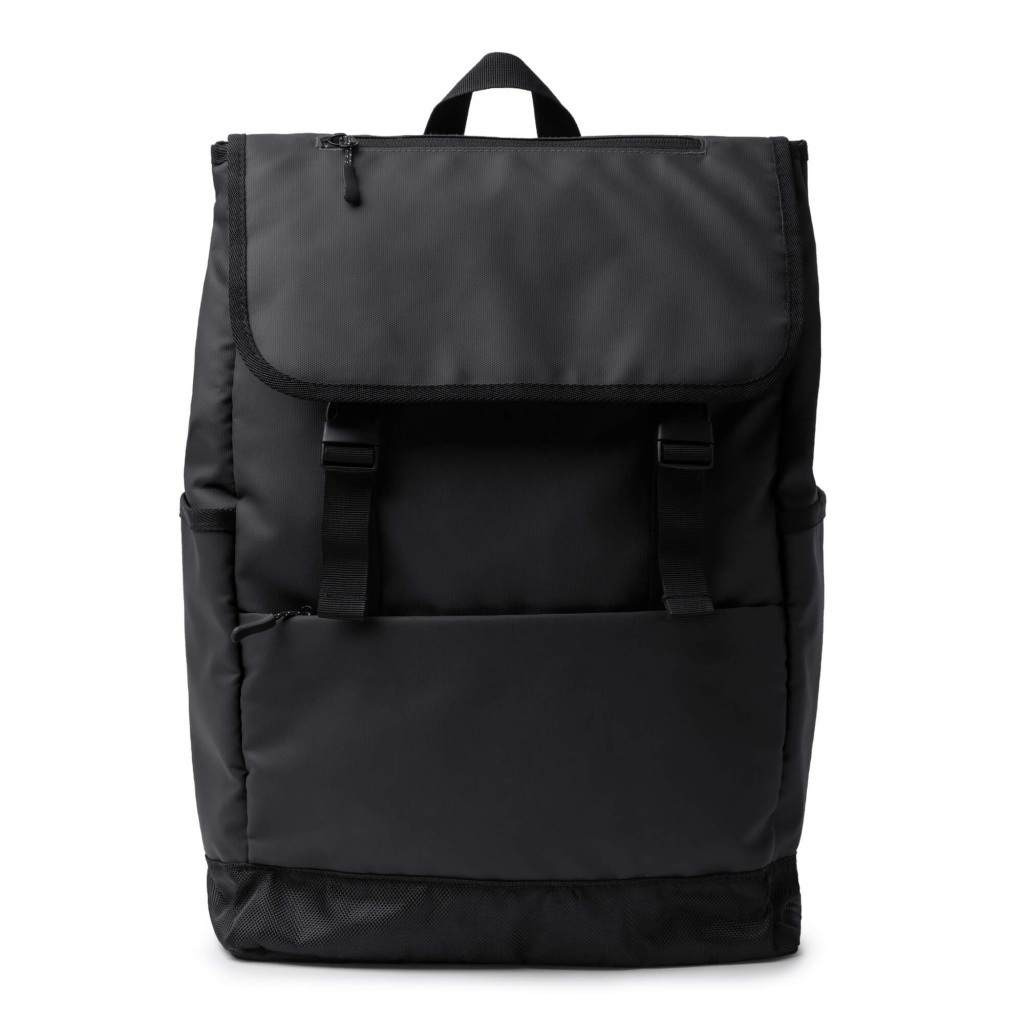 Plecak z klapką wykonany ze skóry PU. Posiada dużą komorę główną z kieszenią na laptopa o przekątnej 15 cali, wyściełane uchwyty i plecy oraz kieszeń z przodu i boczne kieszenie.
