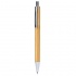 Długopis z serii Eco wykonany z bambusowego korpusu. Elementy metalowe w kolorze srebrnym: przycisk, klips oraz końcówka.