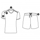 Zestaw sportowy składający się z koszulki i spodenek.