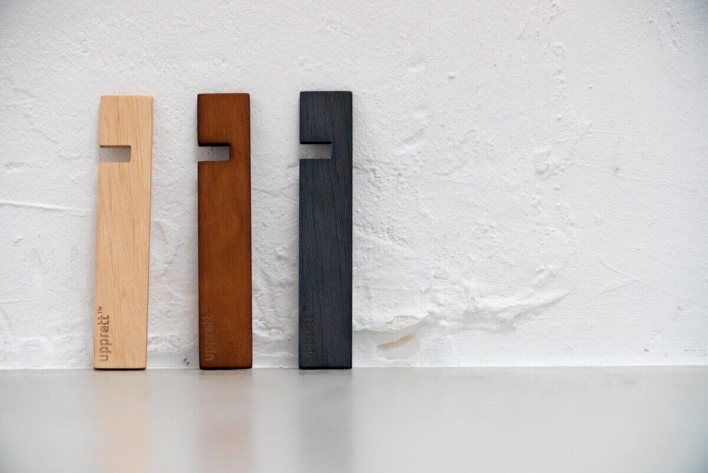 Stylowy, drewniany stojak prostokątny na telefon — prosty, elegancki i kompaktowy, łatwy do zabrania wszędzie, zmieści się w kieszeni, torebce lub plecaku.