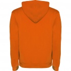 Dwukolorowa bluza z kapturem wykonana z podwójnej tkaniny ze sznurkowym ściągaczem. Kieszeń typu kangurka. Elastyczne ściągacze przy mankietach oraz w pasie.
