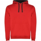 Dwukolorowa bluza z kapturem wykonana z podwójnej tkaniny ze sznurkowym ściągaczem. Kieszeń typu kangurka. Elastyczne ściągacze przy mankietach oraz w pasie.