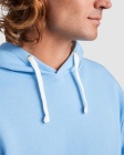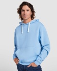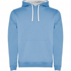 Dwukolorowa bluza z kapturem wykonana z podwójnej tkaniny ze sznurkowym ściągaczem. Kieszeń typu kangurka. Elastyczne ściągacze przy mankietach oraz w pasie.