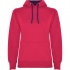 Bluza z kapturem o dopasowanym kroju. Kontrastowe wykończenie wnętrza kaptura oraz dopasowany kolorystycznie sznurkowy ściągacz. Kieszeń typu kangurka. Wzmocnione szwy na karku. Elastyczne ściągacze mankietów i talii wykończone lamówką 1x1.