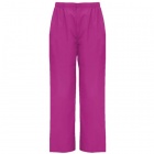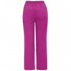 Długie spodnie unisex o prostym kroju nogawki. Pas z gumką, zapinany na guzik i zamek. Tylnia kieszeń.