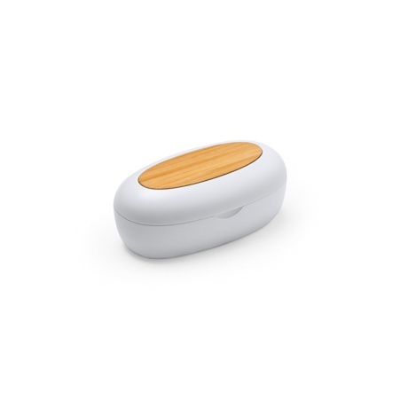 Bezprzewodowe słuchawki Bluetooth 5.0 z ładowarką — obudowa wykonana z bambusa, zaś etui i elementy z tworzywa ABS pochodzącego z recyklingu.