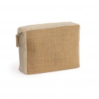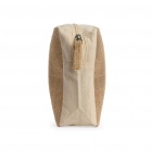 Funkcjonalna kosmetyczka na przybory toaletowe wykonana z bawełny połączonej z laminowaną jutą, przeznaczona do wygodnego przenoszenia akcesoriów łazienkowych. Zamek błyskawiczny zakończony pasującym ściągaczem z juty.