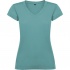 Damska koszulka z krótkim rękawem i dekoltem wykończonym w szpic (V-neck). Szwy boczne. Dopasowany krój.