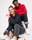 Bluza unisex wykonana z czesanej bawełny organicznej oraz poliestru z recyklingu. Kieszeń typu kangurek. Regulowane, okrągłe sznurki oraz haftowane oczka. Kołnierz, mankiety i dół wykończone prążkowaną dzianiną 2x1.
