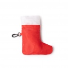 Składana torba na zakupy z miękkiego poliestru 190T, z naszywką w kształcie świątecznej skarpety, która jednocześnie pełni funkcję saszetki do przechowywania torby. W zestawie uchwyty oraz karabińczyk do przenoszenia.