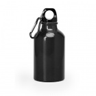 Czarna zakrętka, karabińczyk w tym samym metalicznym odcieniu co butelka.