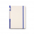 Notatnik formatu A5 wykonany z recyklingowanych kartonów po mleku. Twarda okładka wyposażona w elastyczną gumkę oraz zakładkę w kolorze dopasowanym do dołączonego długopisu z przyciskiem. Zawiera 80 gładkich kartek, zapewniając dużo miejsca na zapiski i szkice. Doskonały do codziennego użytkowania, łączy praktyczność, estetykę i dbałość o środowisko.