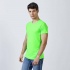 Koszulka z krótkim rękawem. Okrągły dekolt, wzmocnione kryte szwy. Fluorescencyjne kolory. Koszulka wykonana z tkaniny poliestrowej przypominającej w dotyku bawełnę.