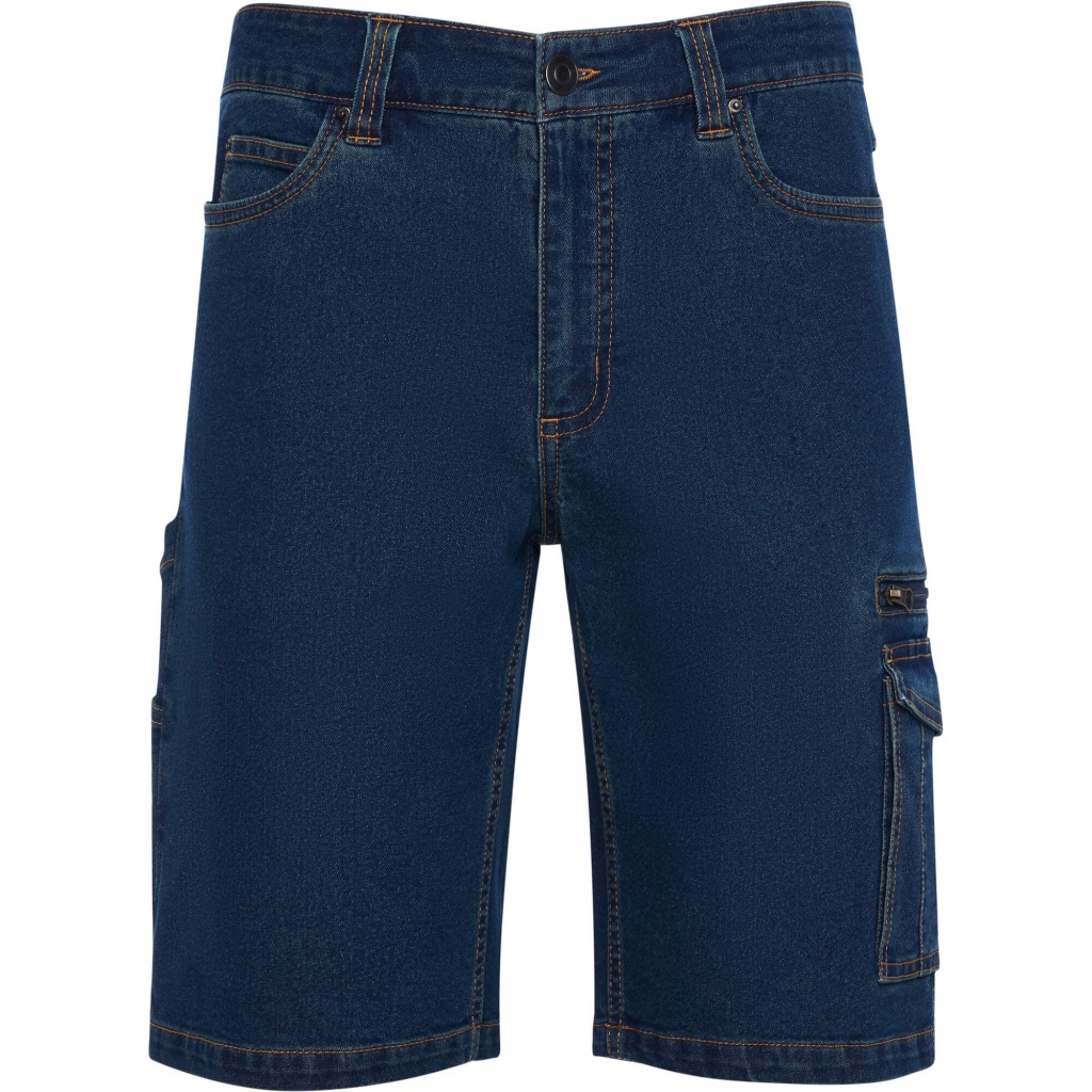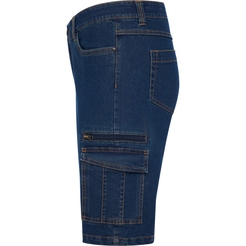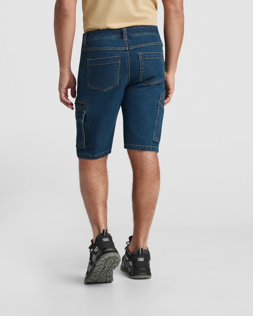 Krótkie spodenki jeansowe z wieloma praktycznymi kieszeniami, idealne do codziennego użytku i pracy.