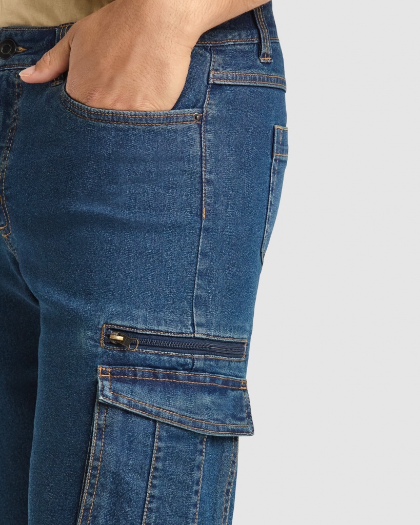 · Kieszeń cargo z klapą i zapięciem na rzep na prawej nogawce.