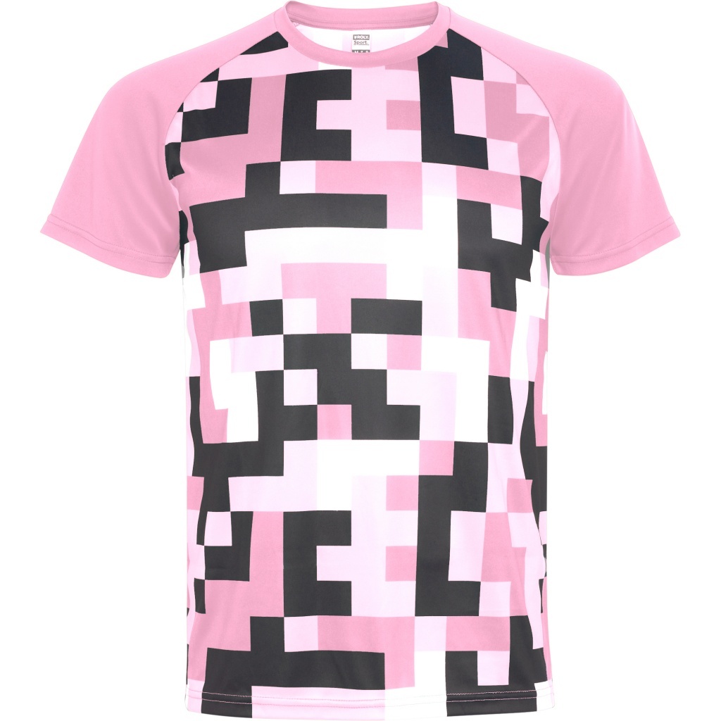 Unisexowa koszulka techniczna z krótkim rękawem w kroju raglanowym. Rękawy w jednolitym kolorze, przód i tył wykonane w technologii sublimacji. Dekolt z tej samej tkaniny dopasowany kolorystycznie do rękawów.