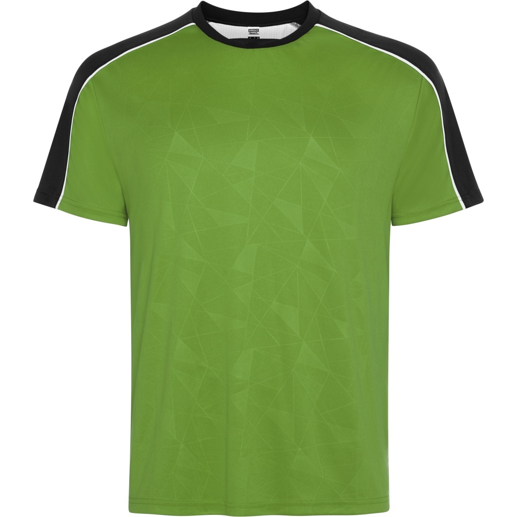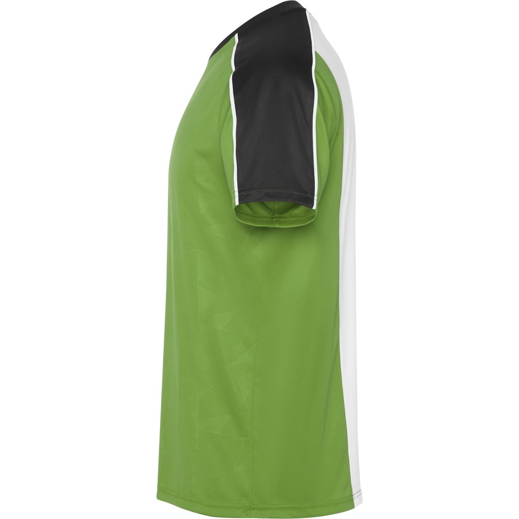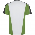 Na przednim panelu znajduje się nadruk. Lamówka zdobi raglanowe szwy rękawów. Na środku pleców zastosowano panele z tkaniny siatkowej dla lepszej wentylacji.
