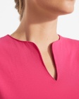 Dopasowany krój z okrągłym dekoltem. Rozcięcie przy kołnierzyku. Podcięte półrękawki. Szwy boczne.