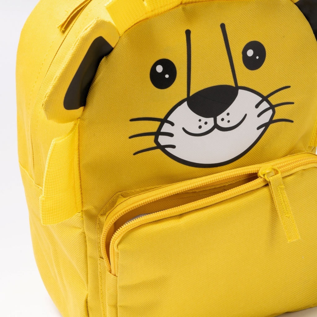 Plecak dziecięcy z wesołym, zwierzęcym motywem. Wykonany z RPET. Zewnętrzna kieszeń zamykana na zamek błyskawiczny. Wyściełane uchwyty i tył plecaka.