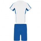 Sportowy komplet składający się z koszulki i spodenek. Doskonały jako odzież sportowa i strój do treningu. Wykonany ze specjalnie oddychającej tkaniny, odpowiedniej do różnego rodzaju aktywności fizycznej.